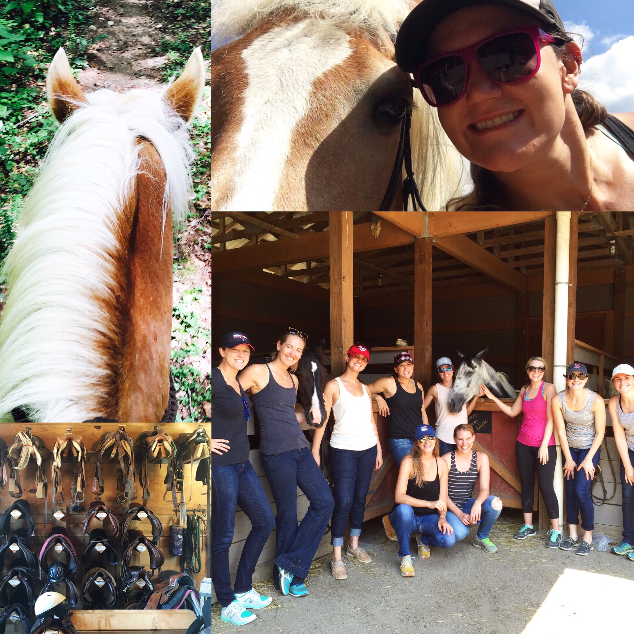 Horses. I love horses. I love to ride but don’t get much of a chance to out here in SoCal. Last weekend in Asheville, we only went on a trail ride and walked and trotted, but it’s still wonderful to be around horses. I have a terrible sense of smell in general, but I LOVE THE SMELL OF HORSE. And barn. And manure. And horse dirt. When I was a wrangler at summer camp, I used to love the horse dirt that gathered in the folds of my elbow pits. Weird but true.